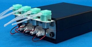 細胞培養装置 潅流ポンプユニット 培地交換や潅流培養を行うポンプユニットです。超小型ながら4系統を独立して運転させられます。ポンプは消耗品として簡便に交換する仕様です。 2025.10.28 細胞培養装置