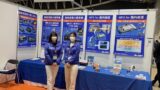 今年のモットー”人知れず・底知れず”に狙いどおりの位置をゲットできました。関心が無い方は素通り御免、ターゲットユーザーにはズバリ情報お届け、三方に開けているのでスペースを有効に使えます。ただ、昨年はパラペット(社名枠とフレーム)付だったのに今年は机とバックパネルだけの簡素な仕様。さすがに寂しいのでパラペットを有料で追加してもらうことにしました。