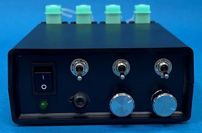 流量はPWM回路でポンプ回転数を変えて管理します。高価な微小流量センサは省いたので、使用の際には任意のボリュームにて単位時間当たりの流量を測って、較正を取っておきます。めっちゃアナログだけど色々な機能を付ければ付けるほどにデカく高額になりますからね。