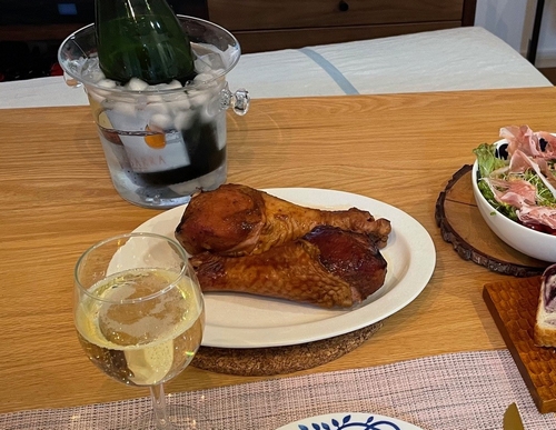 例年あっという間にやって来るクリスマス。しかし今年は気づいた時には既に通り過ぎていた忍者のようでした。それでも遅ればせながら我が家でパーティを実行。メインにはチキン、、、ではなく本来は七面鳥です。総菜コーナーを見るとずらり並んだローストチキンに混じってターキーが置いてあったので、やっぱりここはターキーだよなと購入しました。