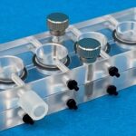 それと、顕微鏡インキュベーターはMPS用として見せています。一番の特長は色々な他社製チップを設置できるアダプターと流路(チューブ)の中継継手とを特注ではなく標準化したものです。パーツを在庫しているのでスライドガラス様態のチップなら納期1週間以内でお出しできます。