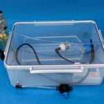 標準で35mmディッシュ2枚が入るC-070Tの側壁と底面を潅流アダプター用に換装したものです。ついでと言っては何ですが、各種の潅流培養に対応したMPS用培養チャンバーも準標準化しました。今まで特注ベースだったのですが、チューブの中継を設けた筐体をパーツ在庫しておいてサッと組み変えて提供できます。