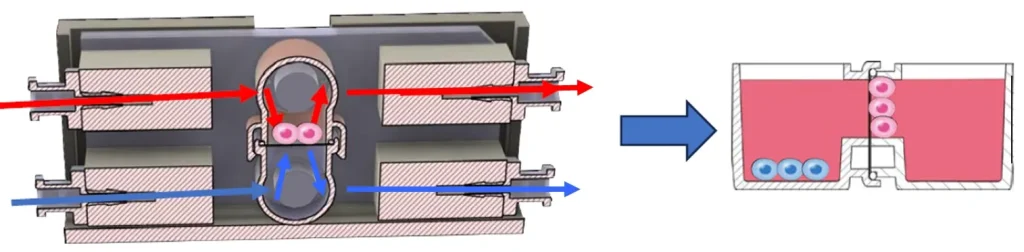 - 縦置きにすることで腸肝細胞の循環モデルを構築できます。